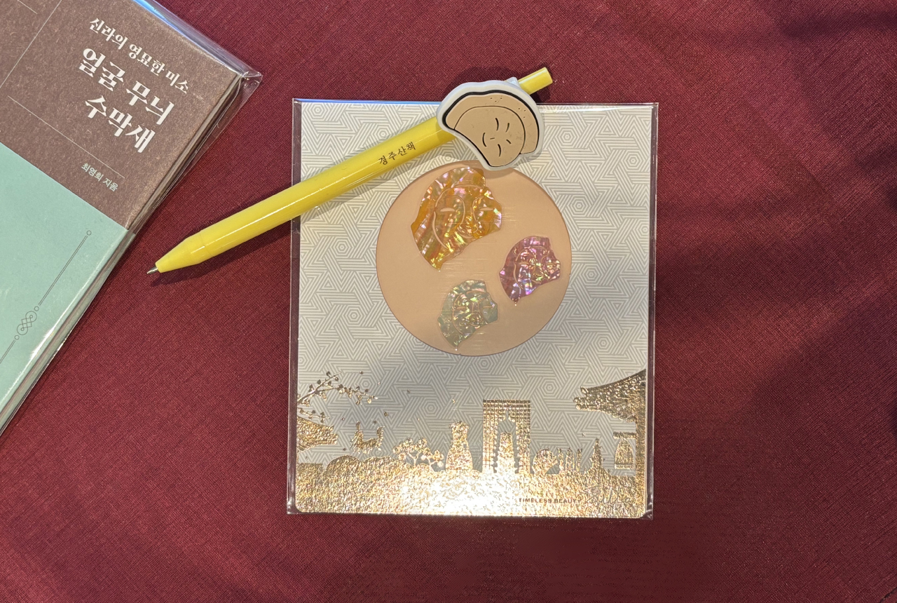 신라 천년의 문화를 담은 '얼굴무늬수막새' 자개 스티커와 기념 볼펜으로