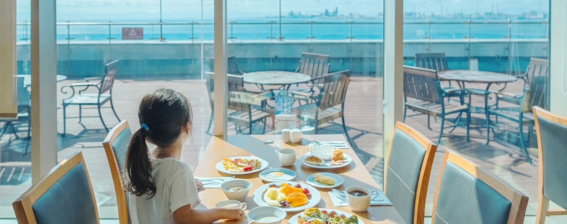 아이와 함께하는 여행의 아침,